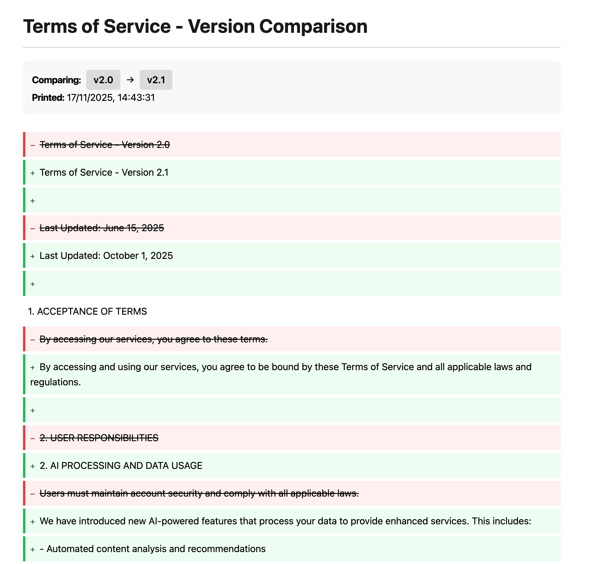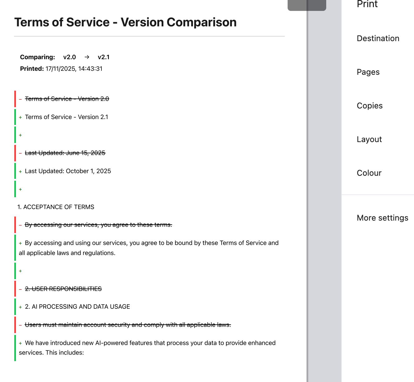 Sometimes, especially on updates, you can only see the new document. So you either printed the old policy or you don’t know what has changed. And usually it contains the whole policy. Even if only 1 line has changed. That’s inconvenient.