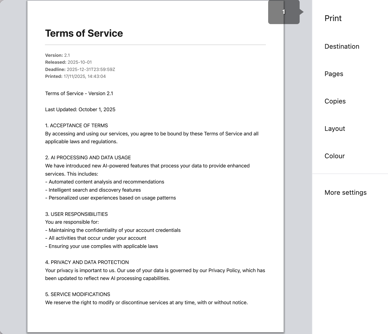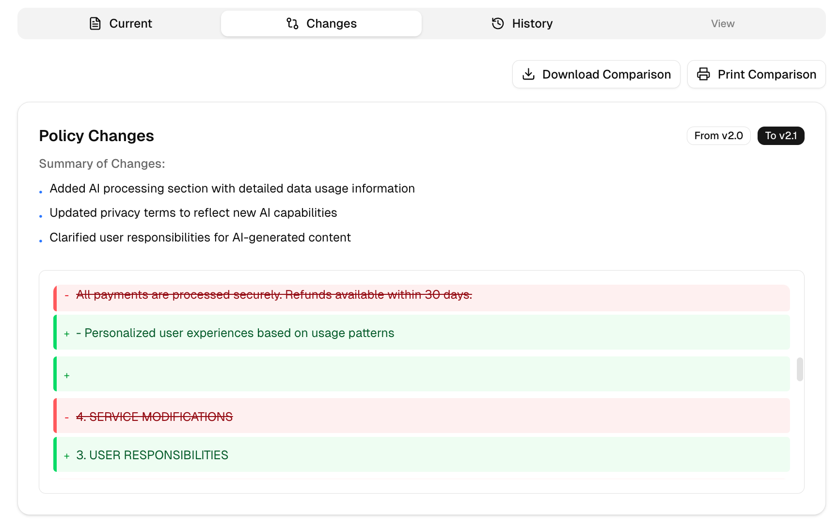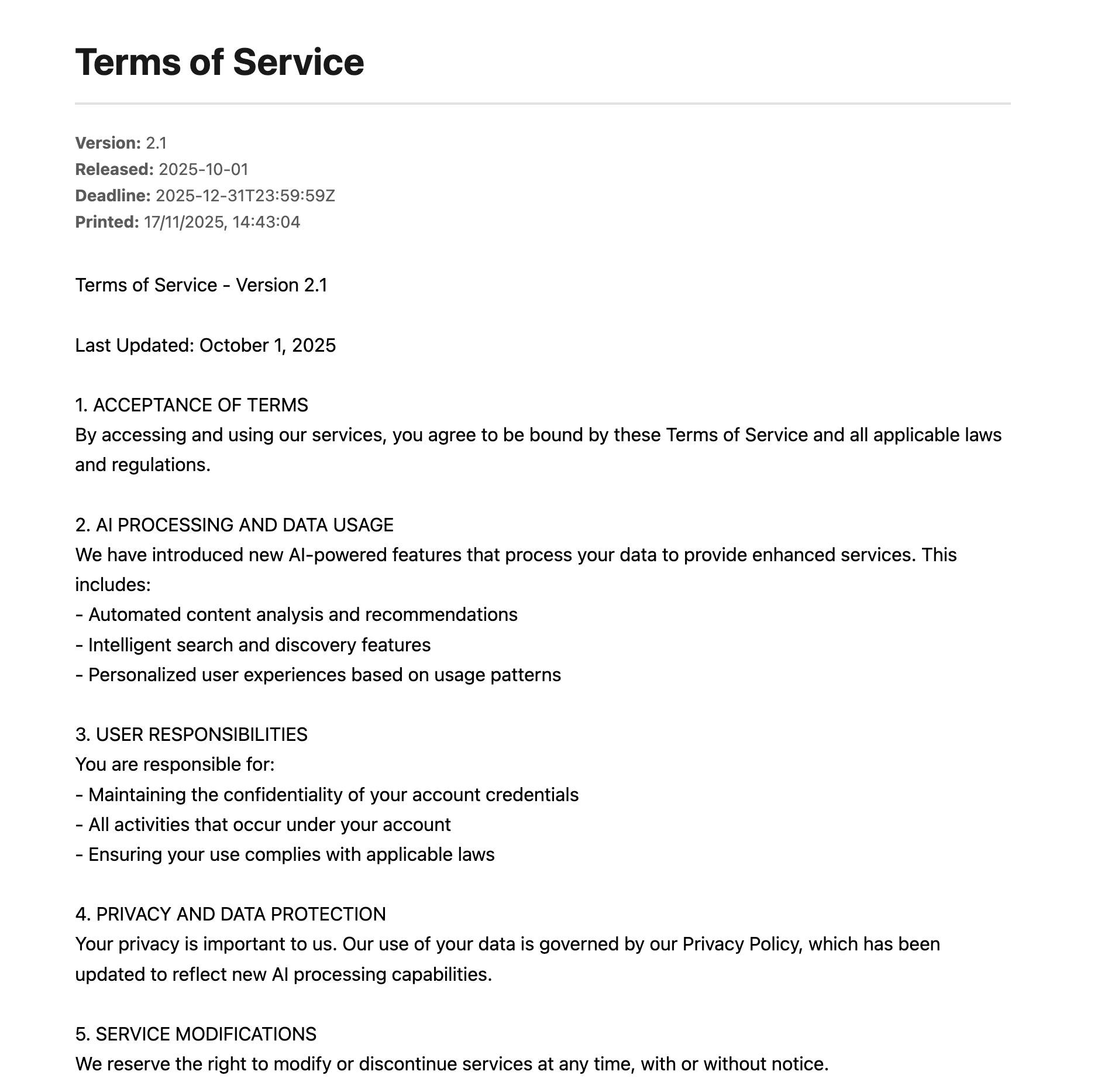 - For normal policy reading send users to a default webpage or blog-style interface (your legal hub)
